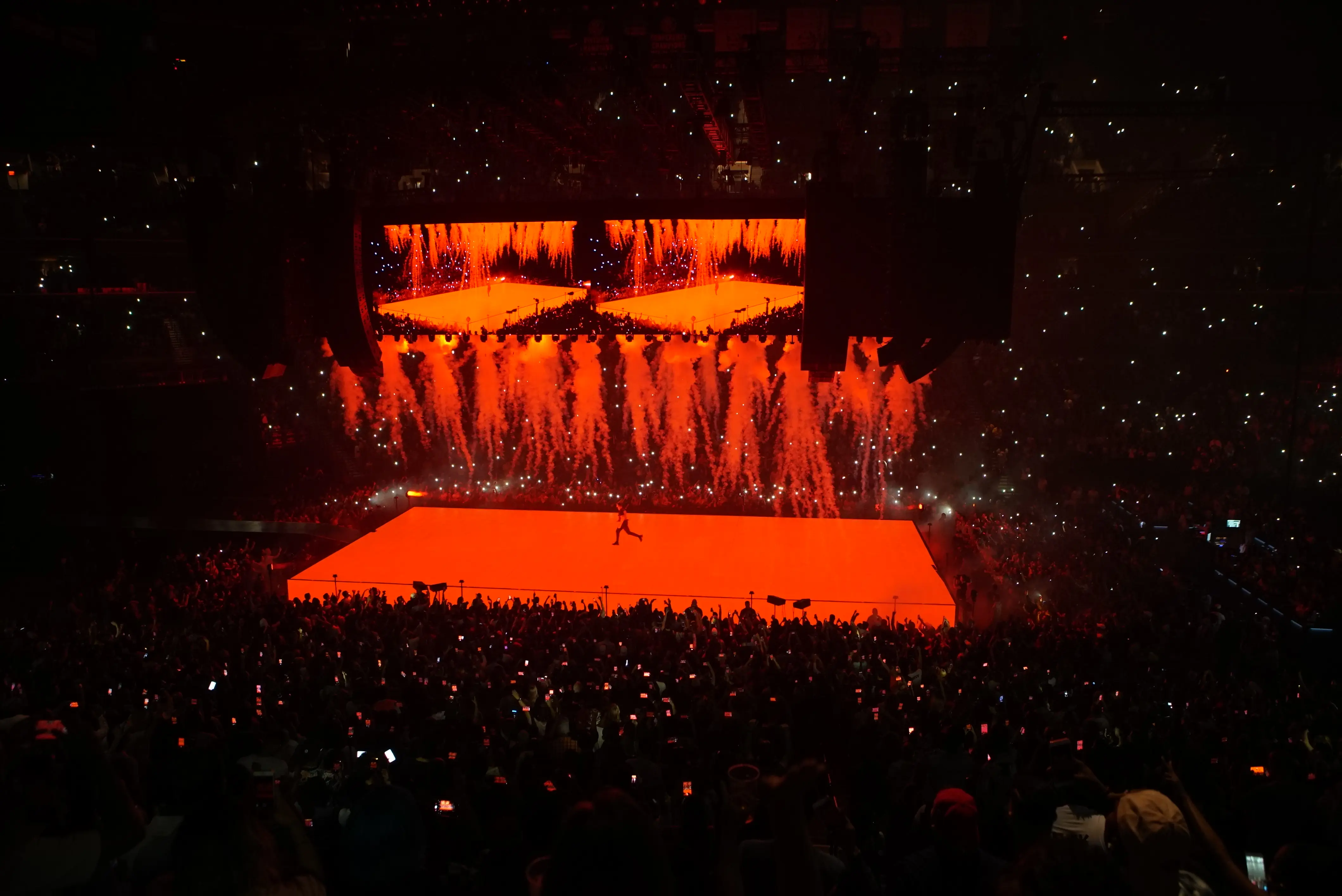 The show used BlackTrax technology, which allowed real-time tracking of the artist's movement around the stage, and the content responded to his movements. When Drake walked on the ice, it broke underneath him.