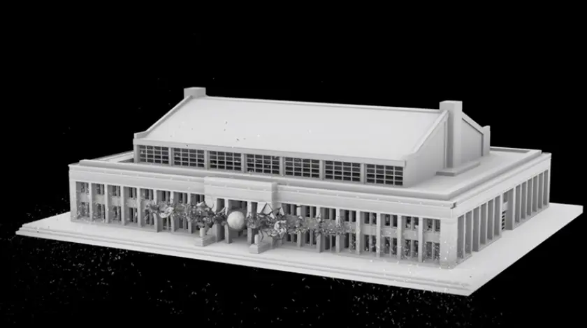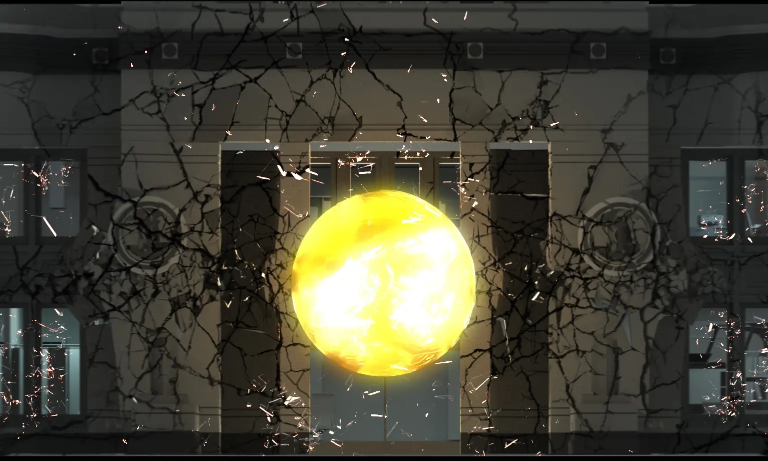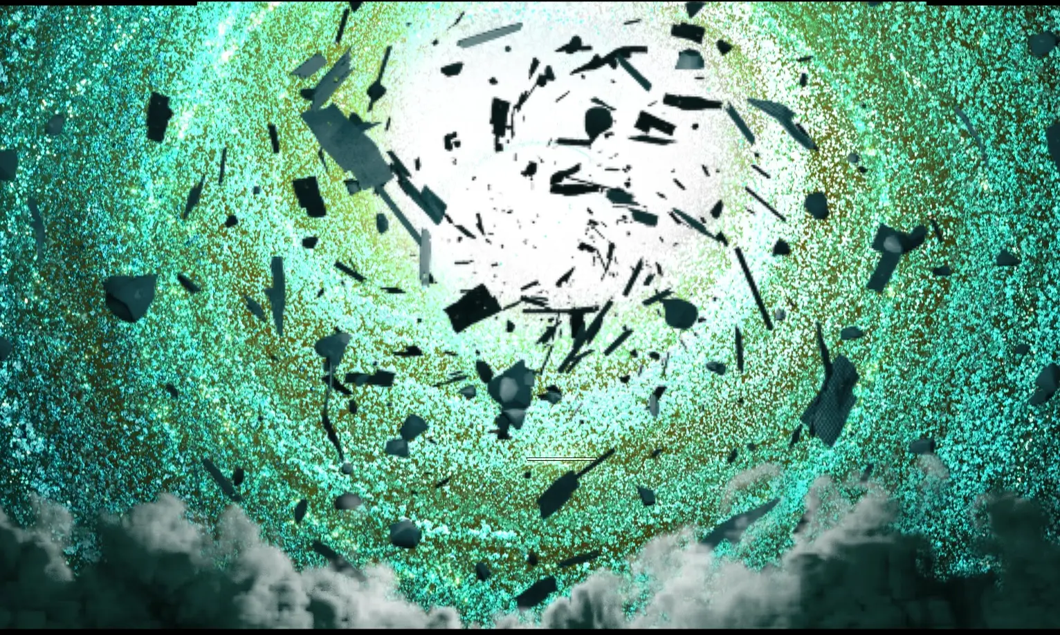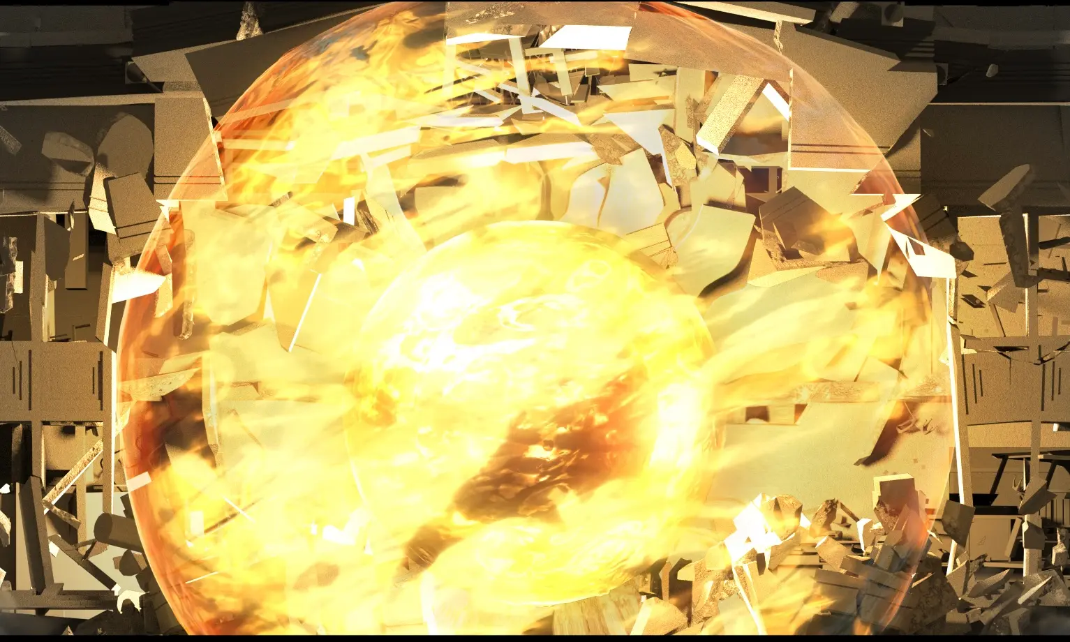 CG supervisor Oleg Barankin wrote the code on VEX to create the effect of a black hole pulling in the pieces of the ruined building. Oleg also wrote the code for the partial whirlpool, that remains after the main geometry of the building is destroyed and pulled into a hole.